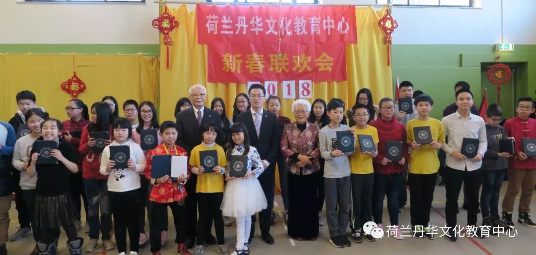 联欢会由丹华老师张佳敏和张娜,及志愿者树伟和胡澜馨主持。首先,李佩燕校长给大家做新年致辞。李校长祝福大家狗年吉祥:旺狗贺岁,欢乐祥瑞;旺狗汪汪,事业兴旺;旺狗打滚,财源滚滚;旺狗高跳,吉星高照;旺狗撒欢,如意平安;旺狗祈福,阖家幸福! 随后,中国驻荷兰大使馆领事部秘书袁春华代表中国驻荷兰大使馆给丹华师生带来了节日的祝福,他高度评价了丹华中文学校在过去一年中取得的成绩,并预祝丹华中文学校越办越好!